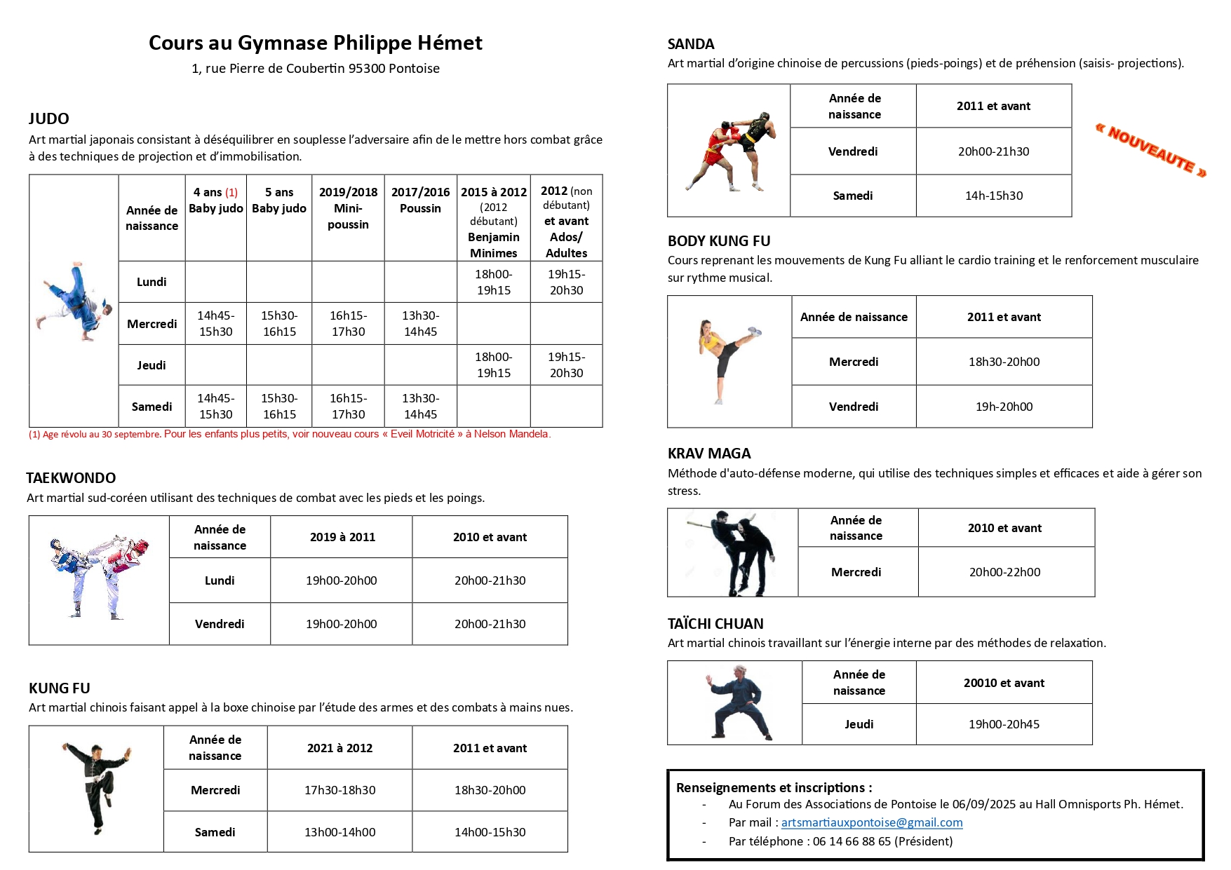 ⚠ Attention: changements d'horaires pour le Judo au gymnase Philippe Hémet.